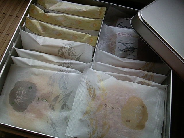 友達が帰ったあと、ふと見ると、息子はこれまたお土産にいただいた「もち吉」のあられをぱりぱりと食べていました。恐るべき胃袋です。
