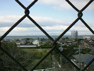 途中、大草公園内にあるお城風の展望台に登って伊勢湾を望めば、雪をいただく鈴鹿山脈がよく見えました。