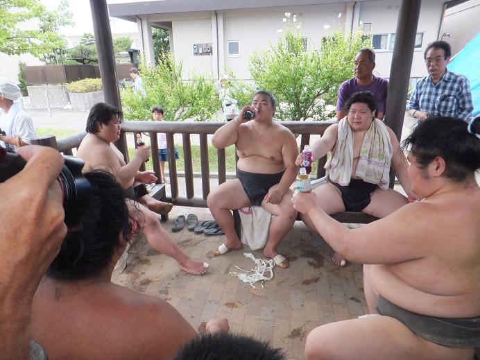 土俵入り終了後、神楽殿で浴衣に着替えた