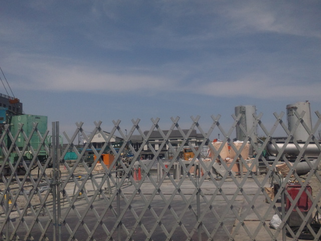 奥にクレーン車が見えるので敷地の内側は取り壊し中と思われます