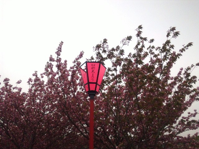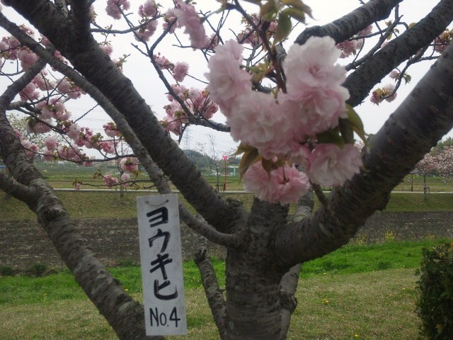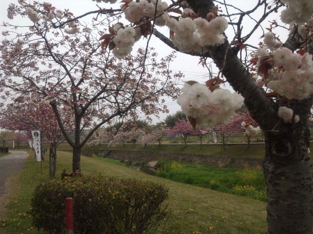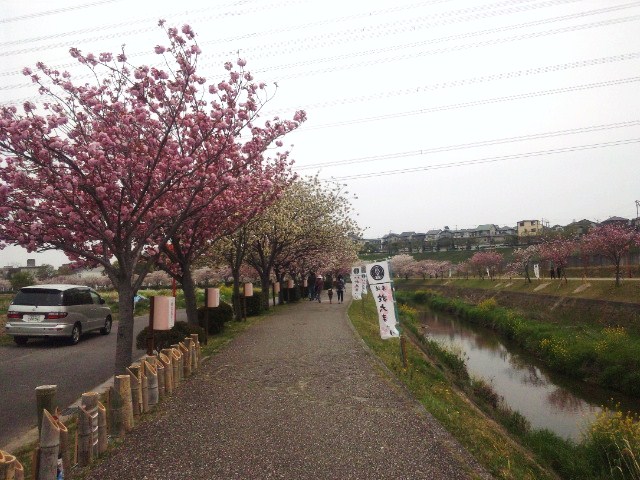 毎年、於大公園の南に流れる明徳川沿いの八重桜が満開になる頃