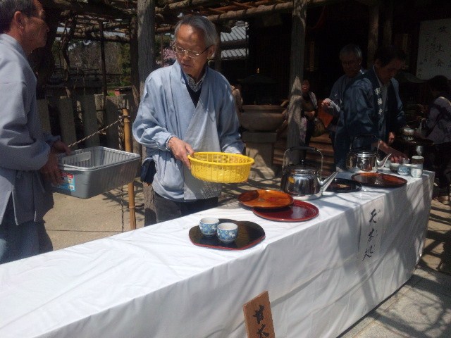 ベテランのおばあちゃまは水筒に甘茶をたっぷり入れていただいていました