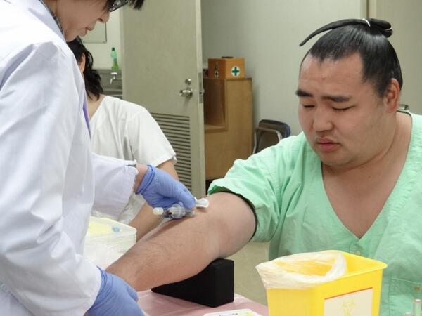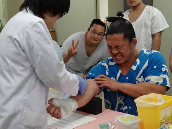 身体がぐぐっと大きくなった鶴竜ですがどうも注射は苦手のようですね
