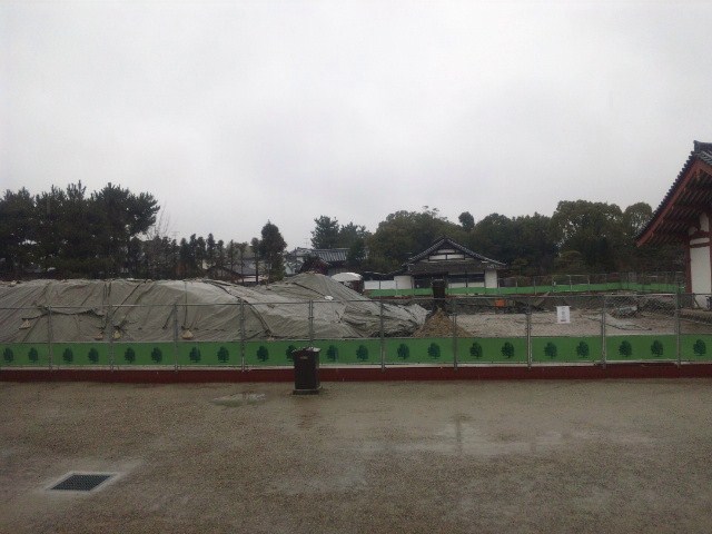 大講堂北側の奈良文化財研究所の発掘現場です