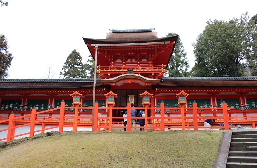 朱と緑が、目にそして心に沁みる春日さんの社殿です