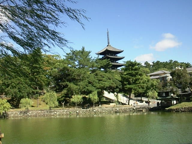 興福寺の南にある猿沢池から興福寺を見ると・・・