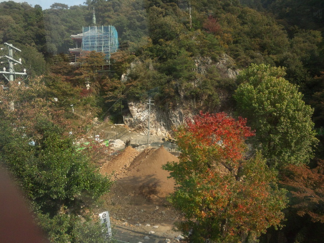 ロープウェイの山麓駅の近くでは発掘調査が進められていました