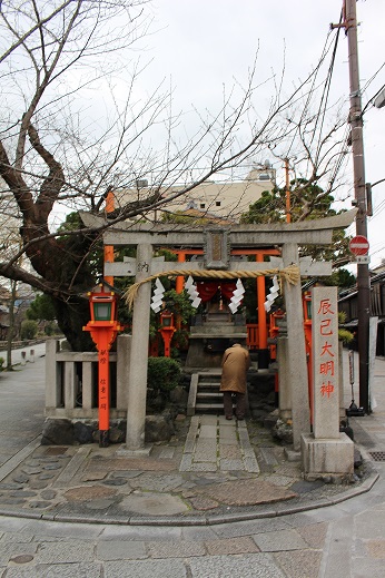疎水沿いに歩いていくと辰巳大明神が見えてきます