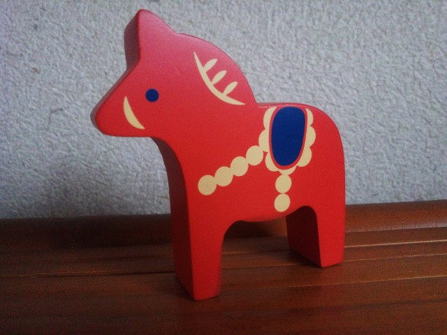 ダーラナホースの木彫りと絵付けの実演が行われていて