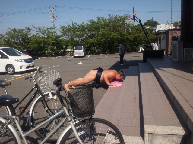 丁寧にバスタオルを畳んでから腕立て伏せが始まりました