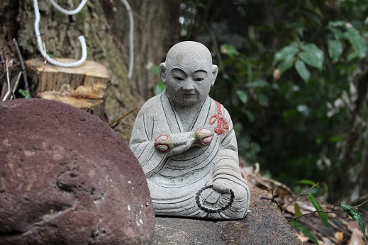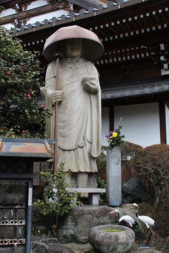 仁王門を越えた階段の片隅に小さな弘法さんが座っていらっしゃいました
