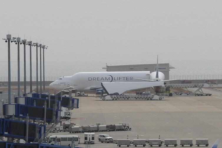 ボーイング787の部品を輸送する巨大輸送機・・・