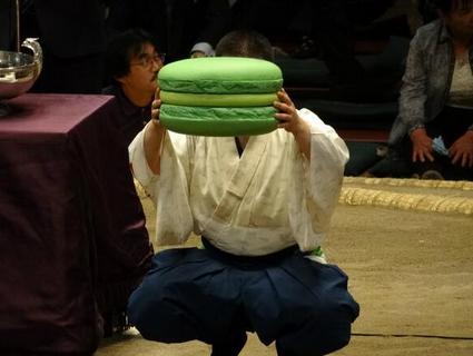 呼び出しさんが捧げ持っている姿も笑っちゃいます