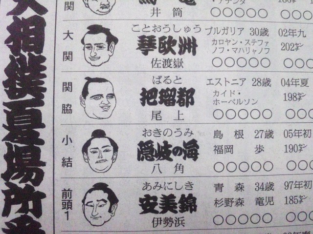 番付表に載っている力士の似顔絵をチェックするのも楽しみなんです