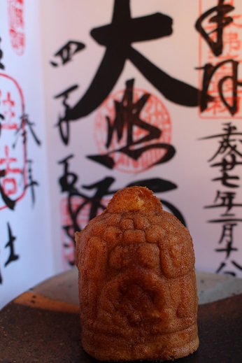 参道にある総本家釣鐘屋で釣鐘まんじゅうを買ってから