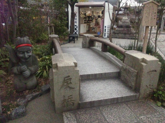 旧一條戻橋の脇に立つ