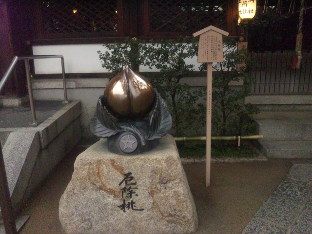 厄除桃を撫で