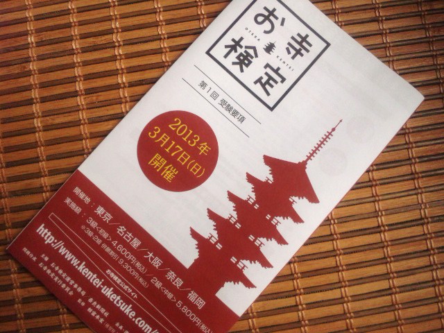 すでに数週間たってしまったお寺検定のこと