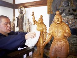 四天王像を清めていらっしゃいますね