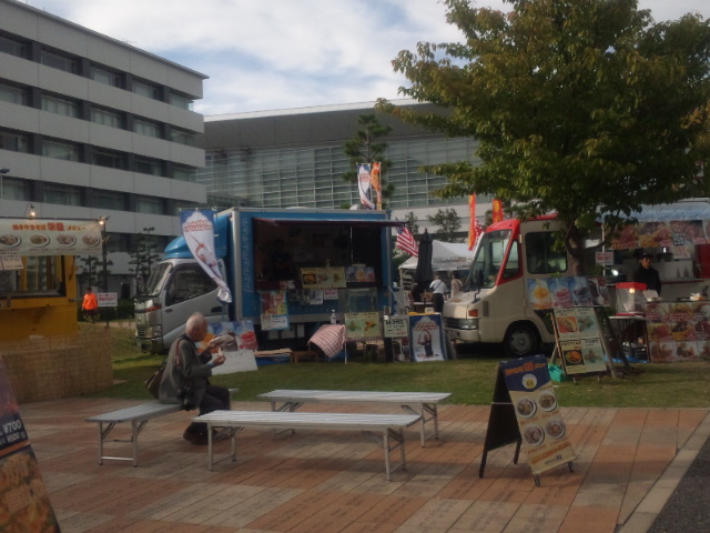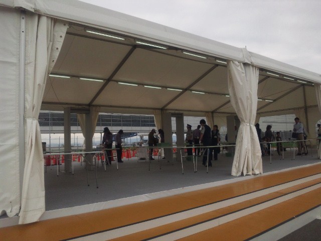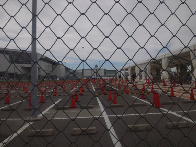 ここから無料のシャトルバスで会場入りしました