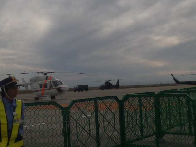 自衛隊のヘリのホバリングが始まりました