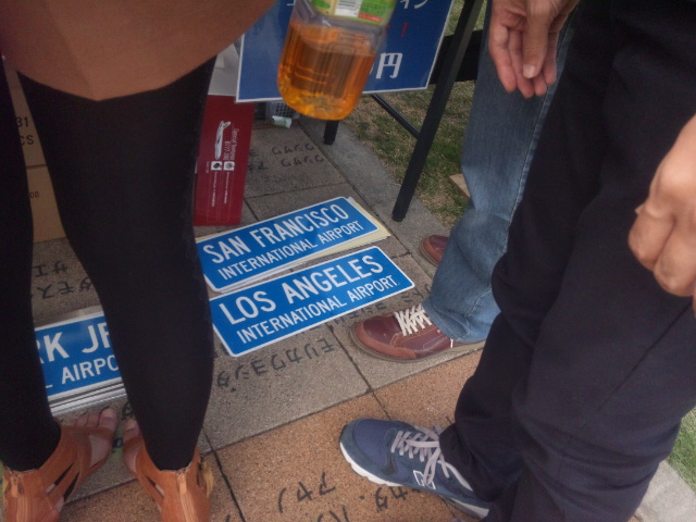 足元にころがっている標識を