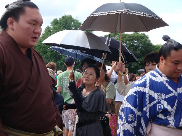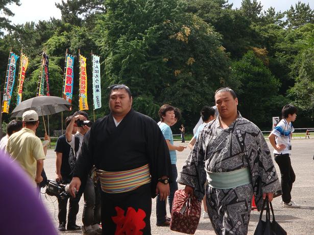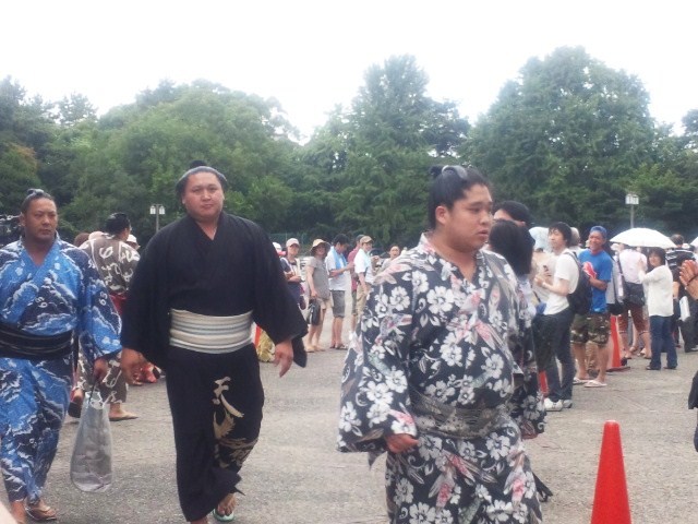 力士たちの会場入りを見るために