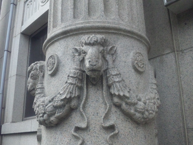 三条通に建つ南都銀行本店のイオニア式の柱にあしらわれています