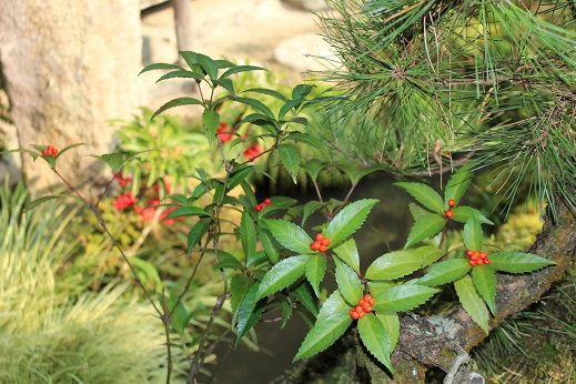 最後に訪れた詩仙堂丈山寺には千両と万両がたくさん植えられていて