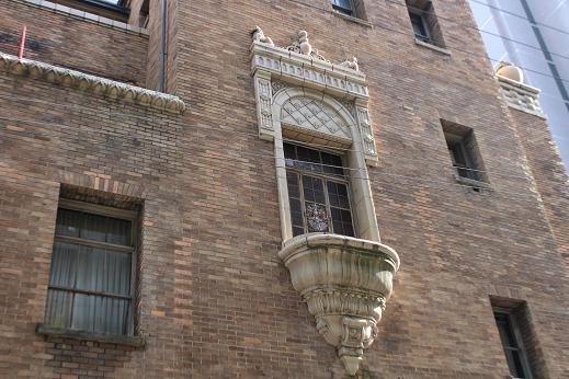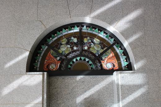 ロビーには旧庁舎のステンドグラスや彫刻が残されています