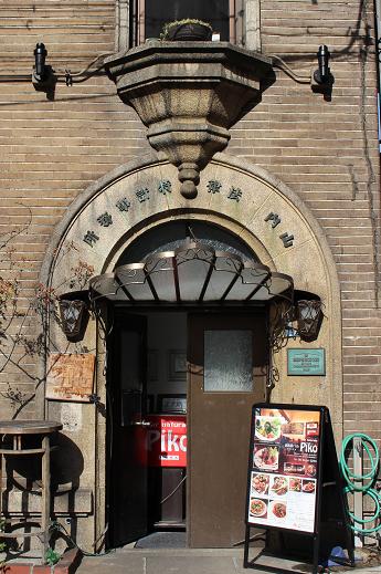 唐草模様の石のアーチ、玄関両脇のトーテムポール(?)・・・面白いです
