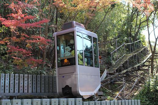 こんな可愛いトロッコに乗って本堂をめざします