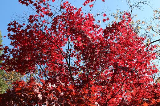 今、静かな山寺が赤く染まっています