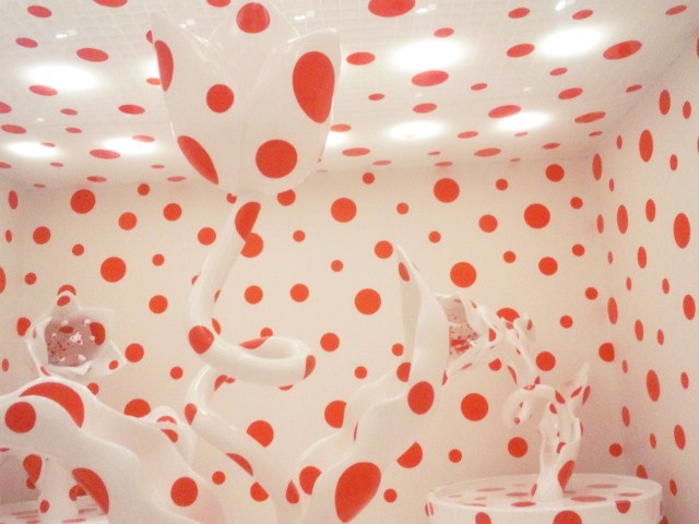 水玉に埋め尽くされた彫刻作品が展示されている小部屋の中です