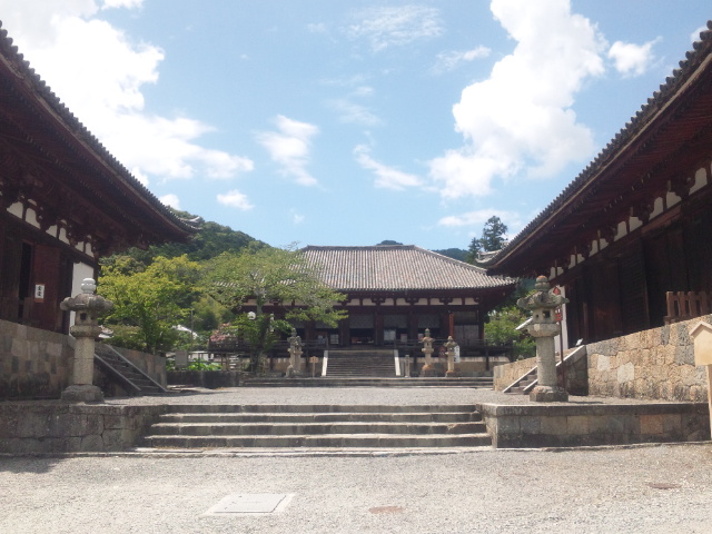 お寺の奥にそびえる二上山が西方浄土だとわかって
