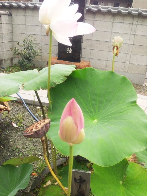 猛暑にあえぐお庭の蓮の花・・・