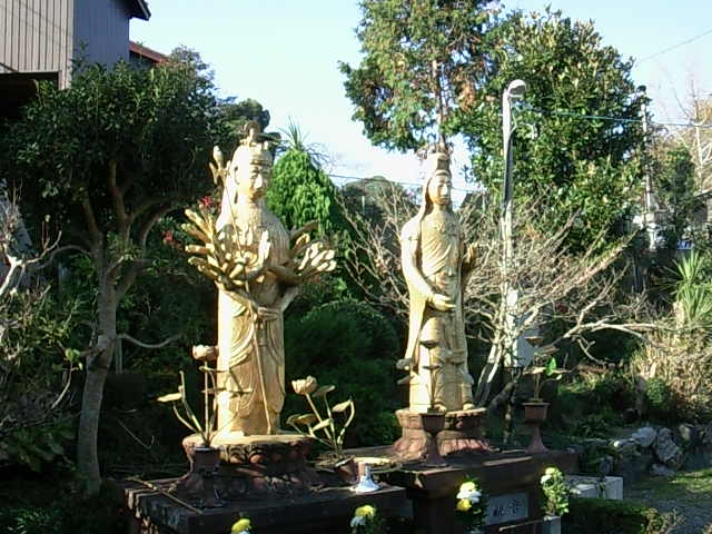 山門の脇にはあのへなへなのお顔の黄金の観音さんが輝いていました。