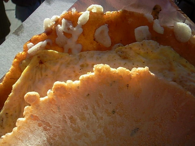 目玉焼きをはさんだもの。