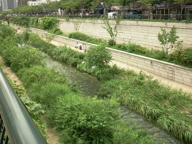 清渓川(チョンゲチョン)沿いを歩いてロッテ百貨店をめざします。
