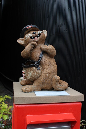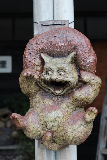 常滑市内の商店街のあちこちに陶彫の作品が飾られていて