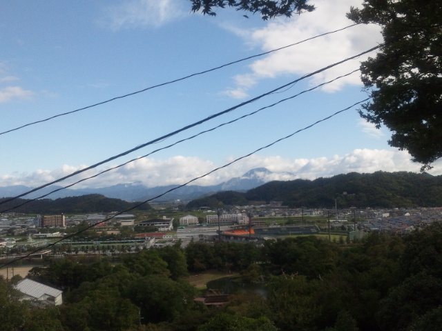 遠くに見えるのは伊吹山