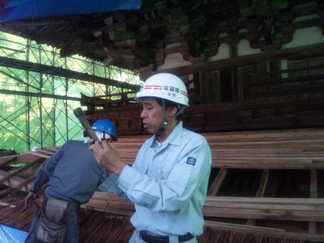ただ今、屋根の葺替工事中。