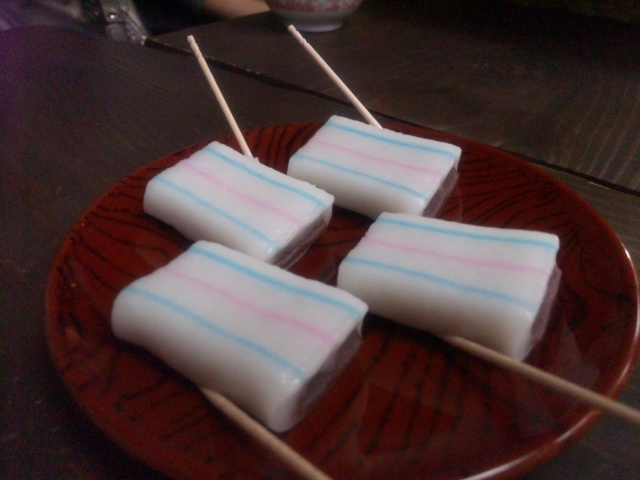 名物の糸切餅の説明を聞きながら