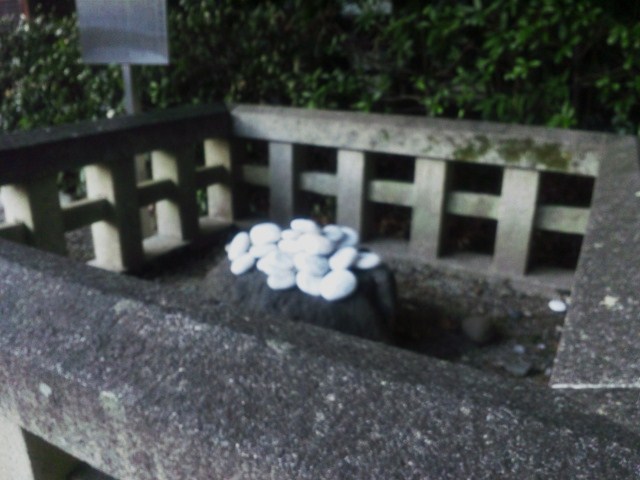 白い小石に住所、氏名を書いて