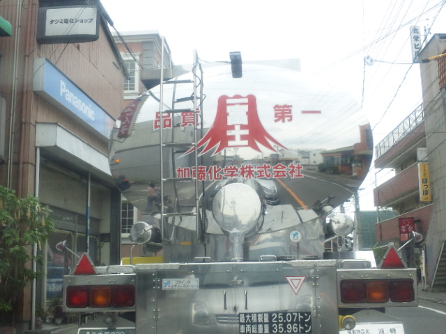 このタンクローリー、よ~く見ると、一富士印の加藤化学ですね。