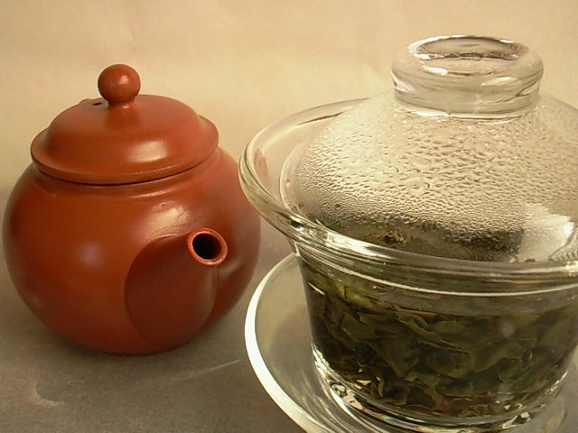 ガラスの蓋碗でいただきます。