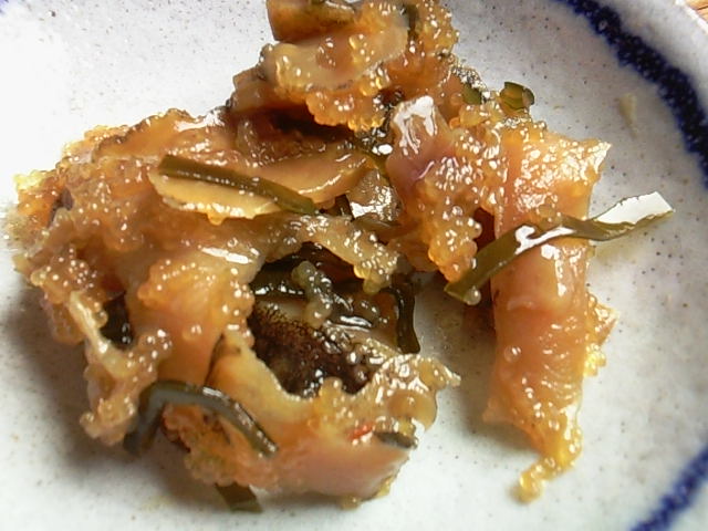伝統の漬け込み技法で、赤ニシ貝、魚卵、昆布を別々に熟成させ