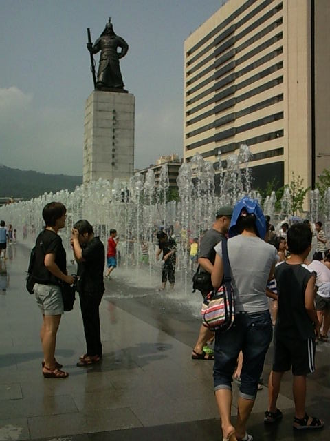 李舜臣将軍の前の噴水が全開