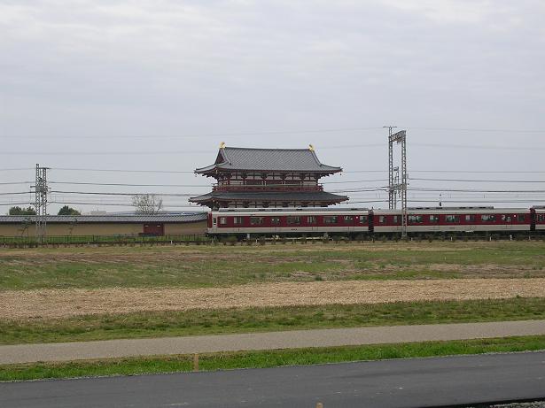 ガタンガタンと近鉄電車が朱雀門の裏