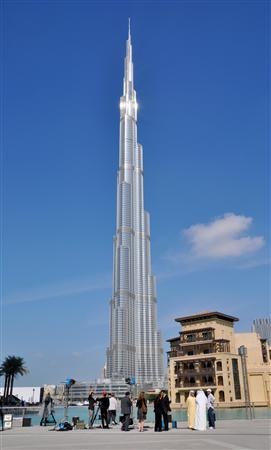 当初、このビルは「ブルジュ・ドバイ(ドバイの塔)」という名でしたが、このドバイ・ショックで財政的に苦しくなったドバイに、アブダビ首長国のハリファ首長がなんと2兆3000億円を支援、そのハリファ首長に感謝の意を表して「ブルジュ・ハリファ(ハリファの塔)」と改名したそうです。